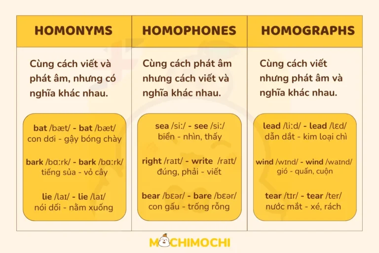 Trong tiếng Anh, từ đồng âm là một hiện tượng ngôn ngữ thú vị, không chỉ mang lại sự đa dạng cho từ vựng mà còn góp phần tạo nên sự sinh động, hài hước trong giao tiếp hàng ngày.…
