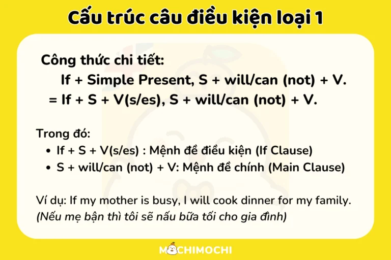 Trong tiếng Anh, câu điều kiện là một phần kiến thức ngữ pháp quan trọng và thường xuyên xuất hiện trong giao tiếp cũng như các kỳ thi. Đặc biệt, câu điều kiện loại 1 được sử dụng nhằm diễn…