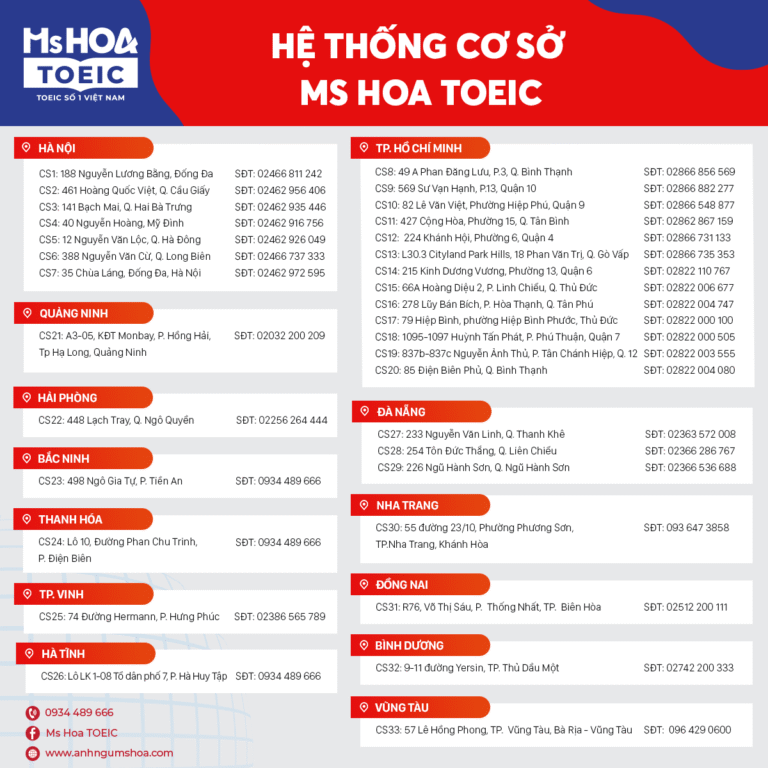 Anh Ngữ Ms Hoa là một trong những trung tâm luyện thi và đào tạo tiếng Anh nổi bật tại Việt Nam, đặc biệt được nhiều học viên lựa chọn khi ôn luyện TOEIC. Tuy nhiên, học phí Anh Ngữ…