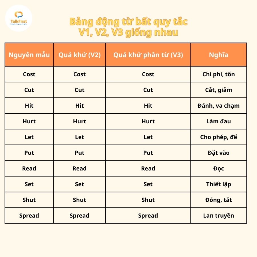 Đặc Điểm Của 10 Động Từ Bất Quy Tắc
