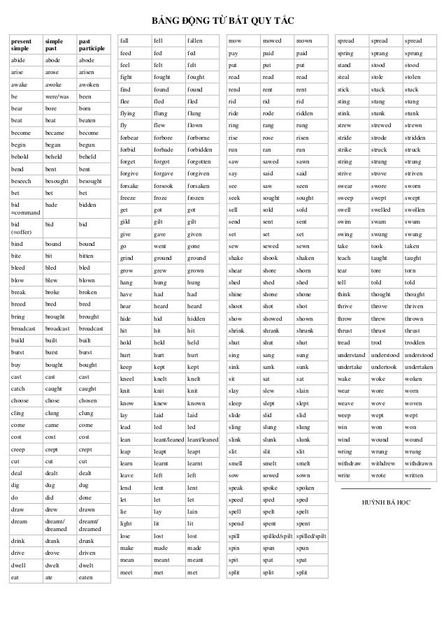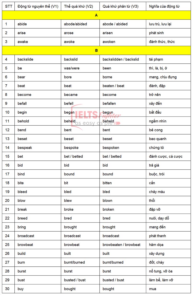 Bảng tổng hợp 10 động từ bất quy tắc quan trọng nhất