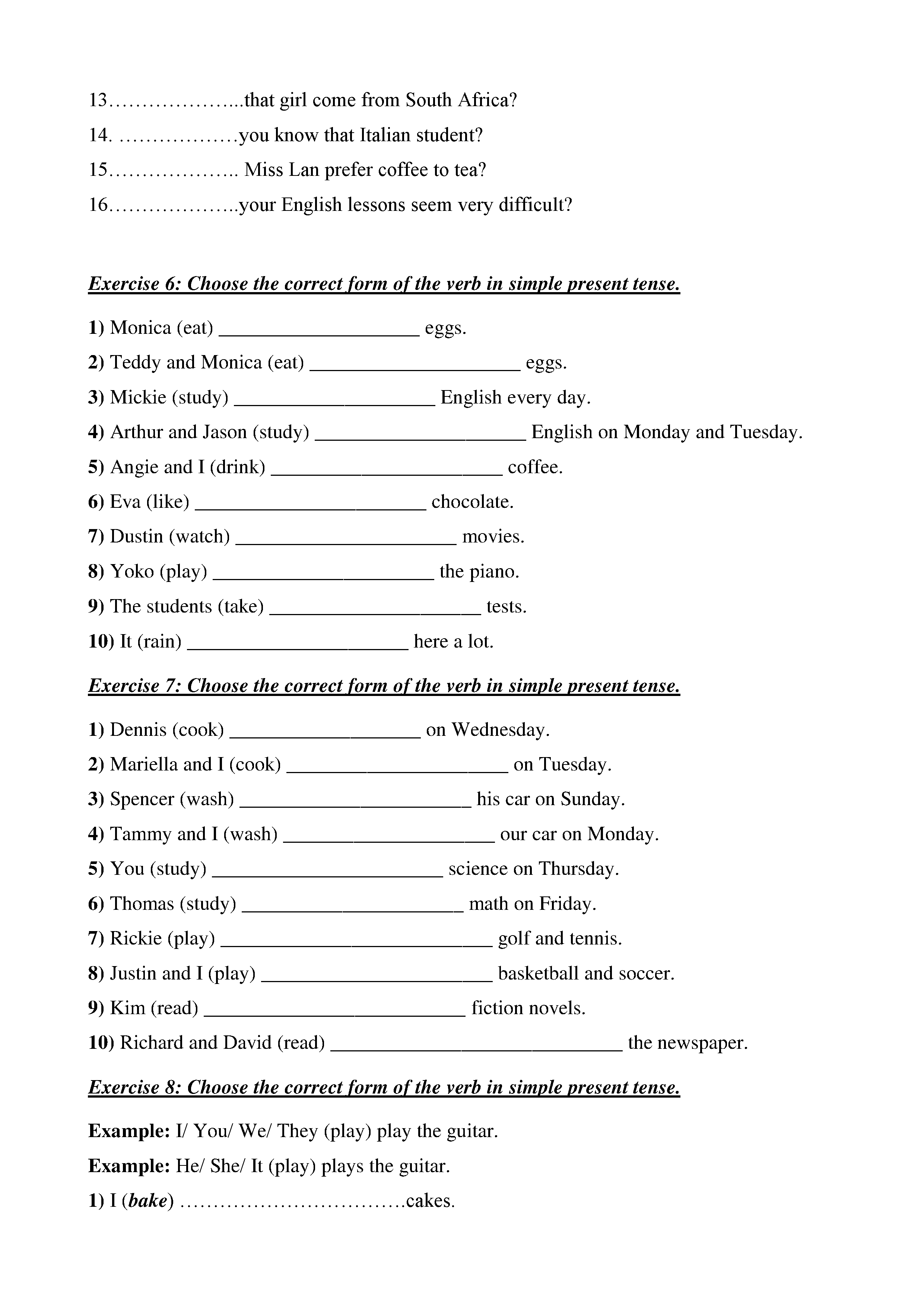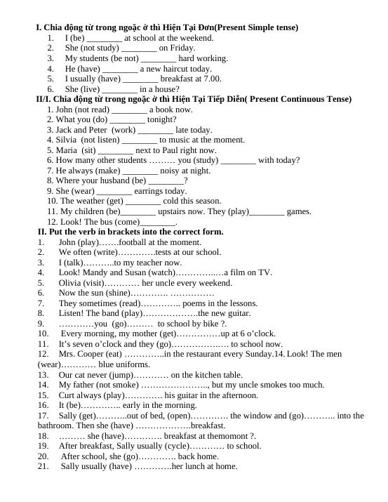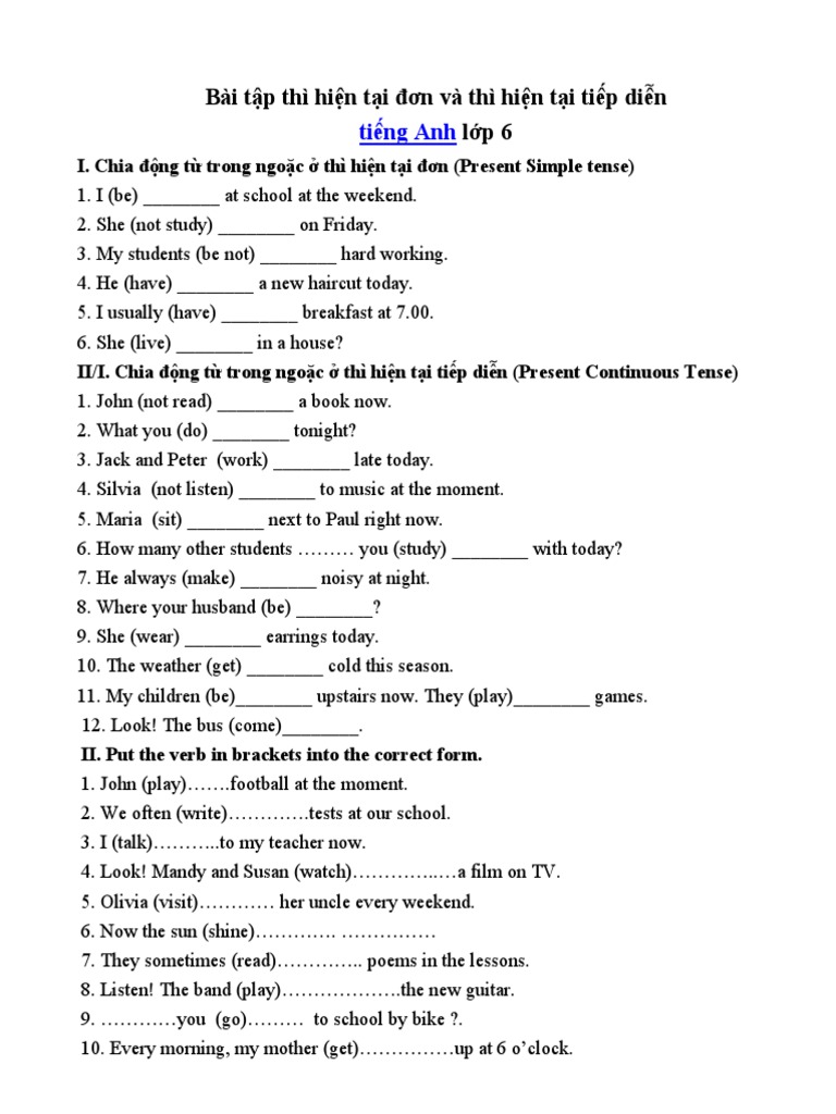 Bài Tập Thì Hiện Tại Đơn Lớp 6 Nâng Cao Pdf