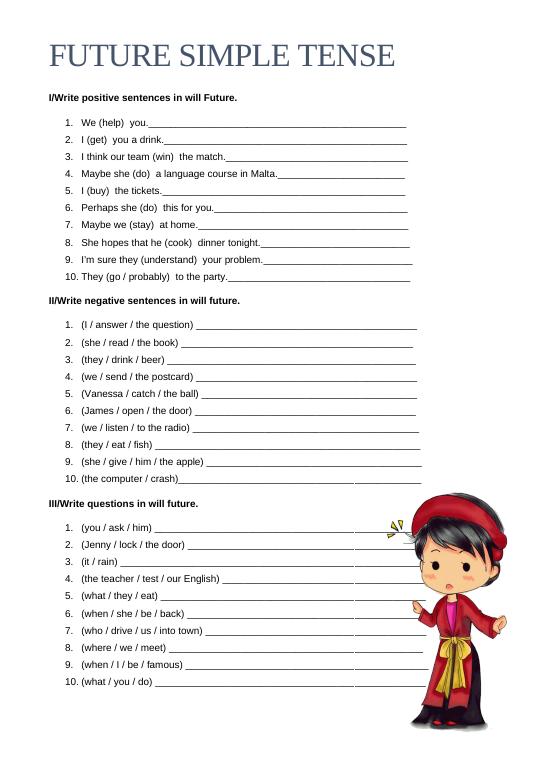 Tham gia vào các bài tập nâng cao với hơn 50 bài tập lý thuyết và thực hành sẽ giúp bạn hiểu sâu hơn về thì tương lai đơn. Việc luyện tập qua các dạng bài như điền từ, chia động từ, hay đặt câu có sự hỗ trợ của ngữ cảnh sẽ thú vị hơn rất nhiều. Bạn sẽ nhanh chóng nhận ra rằng các câu hỏi và câu khẳng định trong thì tương lai đơn không chỉ dễ dàng mà còn rất cần thiết trong giao tiếp hàng ngày.