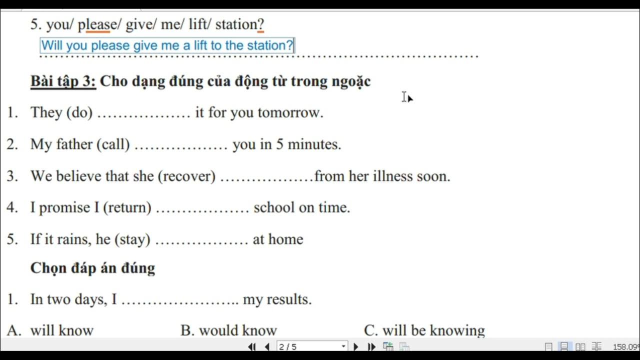 Đặc biệt, tài liệu này cũng cung cấp lời giải chi tiết cho từng bài tập, rất thuận tiện cho việc tự kiểm tra tiến bộ của bản thân. Việc luyện tập thường xuyên sẽ giúp người học tự tin hơn trong việc sử dụng thì tương lai đơn, từ đó có thể giao tiếp một cách trôi chảy và tự nhiên hơn.