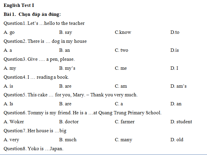 Nhà trường cũng khuyến khích các em luyện tập thường xuyên để chuẩn bị tốt cho các bài kiểm tra 1 tiết và cuối kỳ. Với bộ bài tập này, học sinh sẽ có cơ hội ôn tập lại những ngữ pháp và từ vựng quan trọng nhất, từ đó giúp việc học tiếng Anh trở nên thú vị và hiệu quả hơn.