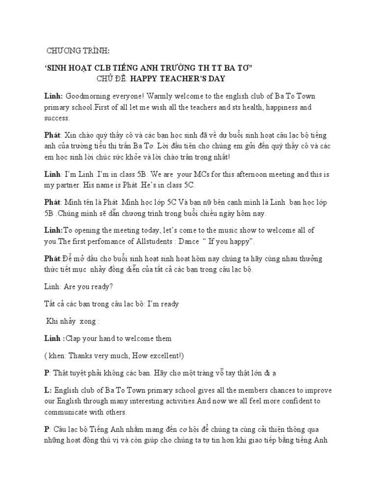Trong câu lạc bộ tiếng Anh, việc lựa chọn các chủ đề phong phú không chỉ giúp các thành viên nâng cao khả năng ngôn ngữ mà còn tạo cơ hội giao lưu, học hỏi và phát triển kỹ năng mềm. Từ văn hóa, ẩm thực đến công nghệ và môi trường, mỗi chủ đề đều mang đến những bài học quý giá và thú vị. Điều quan trọng là sự tham gia tích cực và sự đa dạng trong ý tưởng của mỗi thành viên, tạo nên một môi trường học tập sinh động và hiệu quả. Hy vọng rằng câu lạc bộ sẽ tiếp tục phát triển và khơi gợi niềm đam mê học hỏi trong tất cả chúng ta.