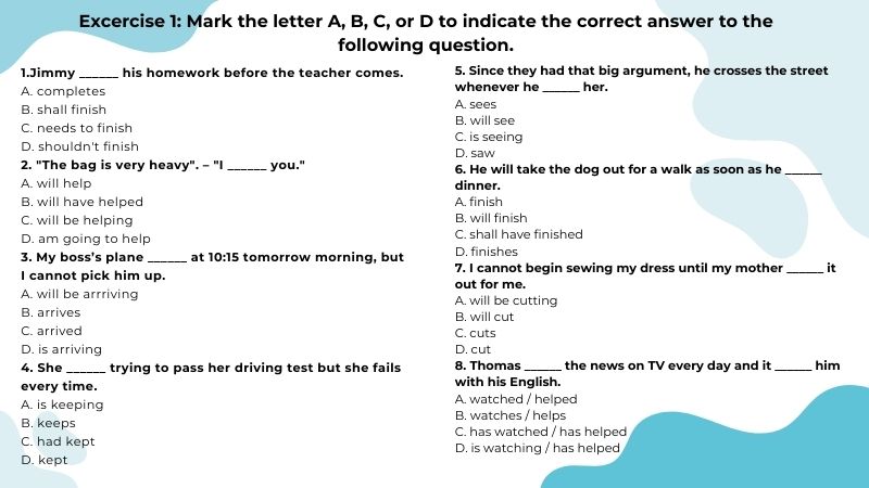 Cuối cùng, hãy nhớ rằng việc phân tích và áp dụng các quy tắc ngữ pháp cũng rất quan trọng. Thực hành thường xuyên với các dạng bài khác nhau sẽ giúp bạn tự tin hơn trong các kỳ thi.