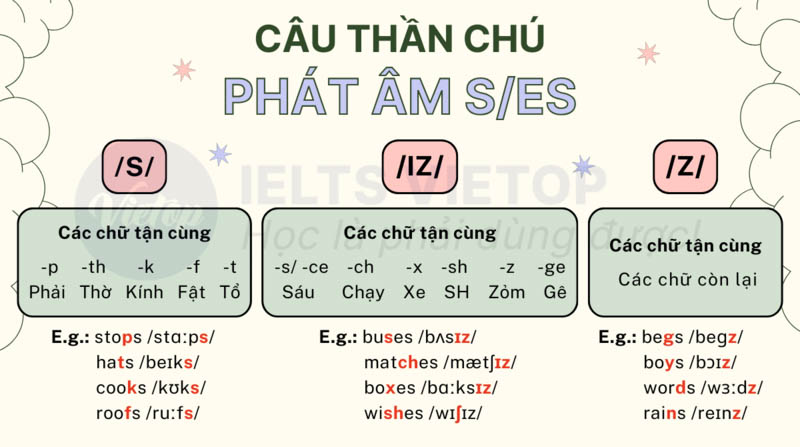 Các quy tắc phát âm đuôi s/es cũng khá quan trọng. Đuôi “s” trong nhiều trường hợp được phát âm là /s/, nhưng nếu đứng sau một âm hữu thanh như “b”, “d” hay /z/, bạn đọc là /z/. Hãy luyện tập để cải thiện khả năng phát âm của mình nhé!