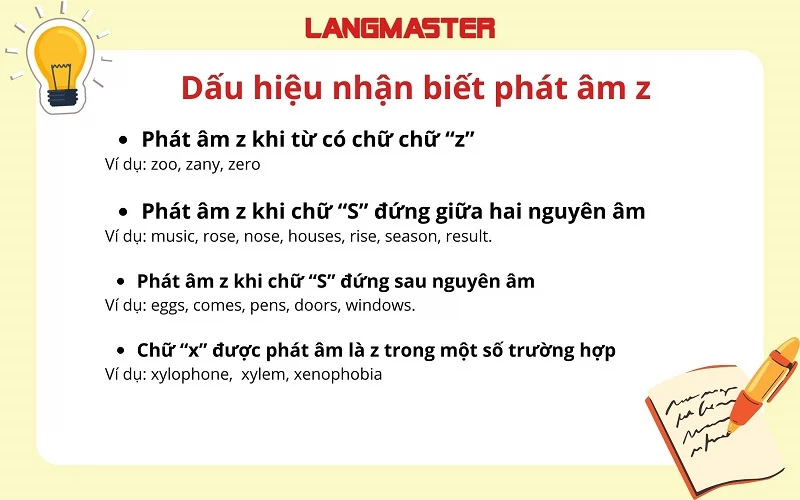 Ngược lại, âm /z/ là âm hữu thanh, tức là có sự rung của dây thanh. Khi bạn phát âm /z/, hãy cảm nhận sự rung trong cổ họng, chẳng hạn như trong từ “zip” hay “buzz”. Một mẹo đơn giản để phân biệt hai âm này là khi phát âm /s/, bạn thả lỏng lưỡi và đặt nó ở vị trí gần răng cửa, trong khi với /z/, bạn sẽ cảm giác dây thanh rung.