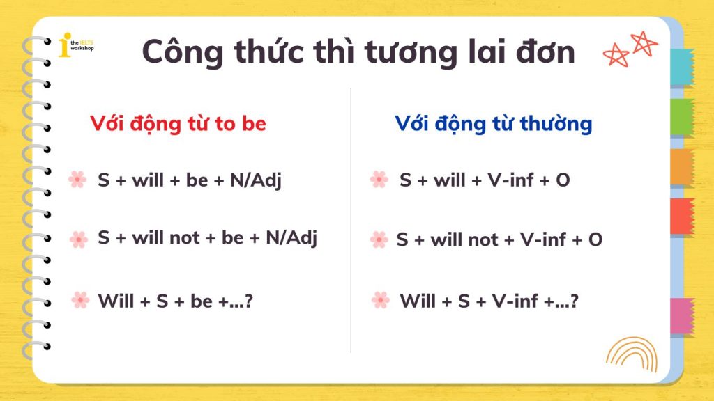 Thì tương lai đơn (Simple Future Tense) trong tiếng Anh là một cấu trúc cơ bản, thường được sử dụng để diễn tả các hành động sẽ xảy ra trong tương lai. Cấu trúc chính của thì này là: S + will + V-inf, trong đó S là chủ ngữ và V-inf là động từ nguyên thể. Ví dụ, câu “I will study tomorrow” thể hiện việc học sẽ diễn ra vào ngày mai.