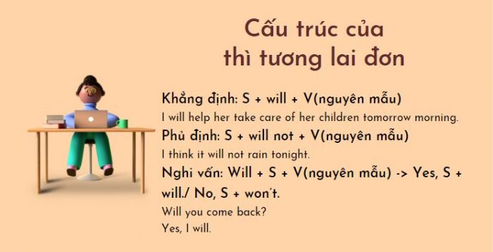 Để sử dụng thì này, chúng ta có hai cấu trúc phổ biến: “will + V” và “be going to + V”. Mặc dù cả hai đều diễn tả hành động xảy ra trong tương lai, nhưng cách dùng sẽ khác nhau một chút. Khi có kế hoạch cụ thể, chúng ta thường dùng “be going to”.