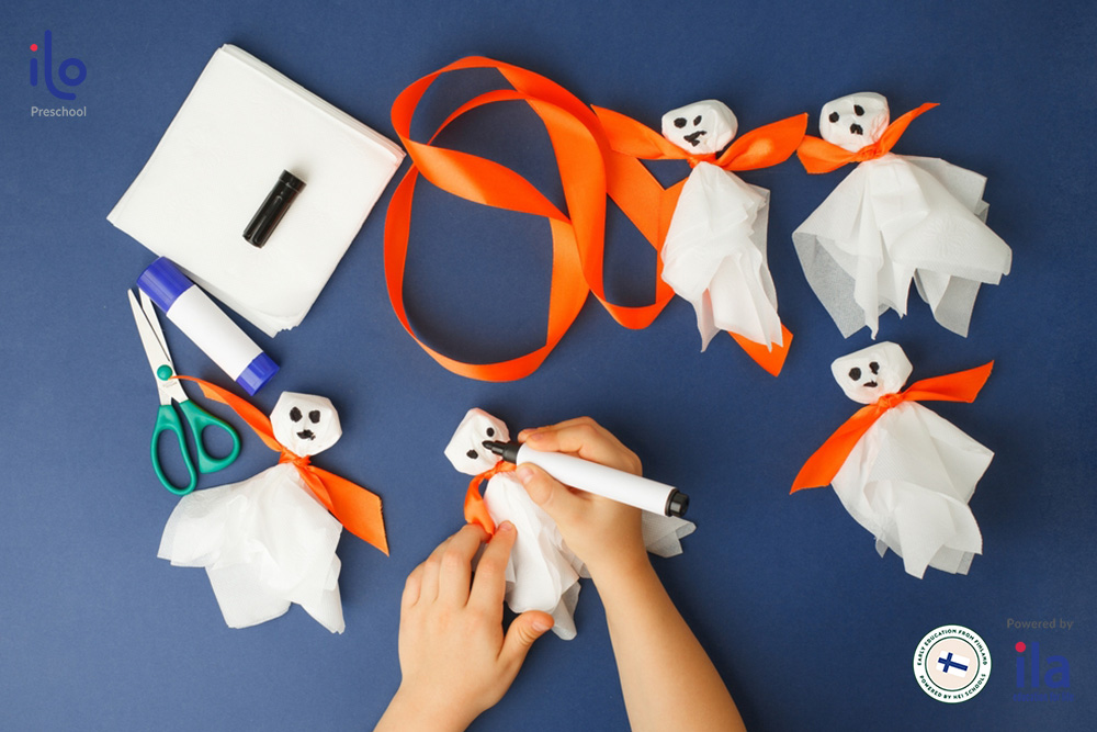 Bên cạnh đó, những hoạt động sáng tạo như quấn giấy thành “xác ướp” hay trò chơi “trick or treat” sẽ mang đến cho các bé những giờ phút hào hứng. Trẻ cũng có thể tham gia vào việc trang trí lớp học với những chiếc bóng bay cam và đen, tạo ra một không gian ma mị nhưng cũng không kém phần dễ thương.
