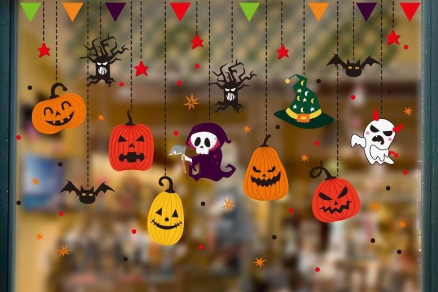 Đừng quên sử dụng một số quả bí ngô giả và decal dán tường mang chủ đề Halloween để lớp học thêm phần sinh động. Những hoạt động như vậy không chỉ làm đẹp không gian mà còn giúp trẻ em học hỏi và vui chơi trong môi trường sáng tạo.