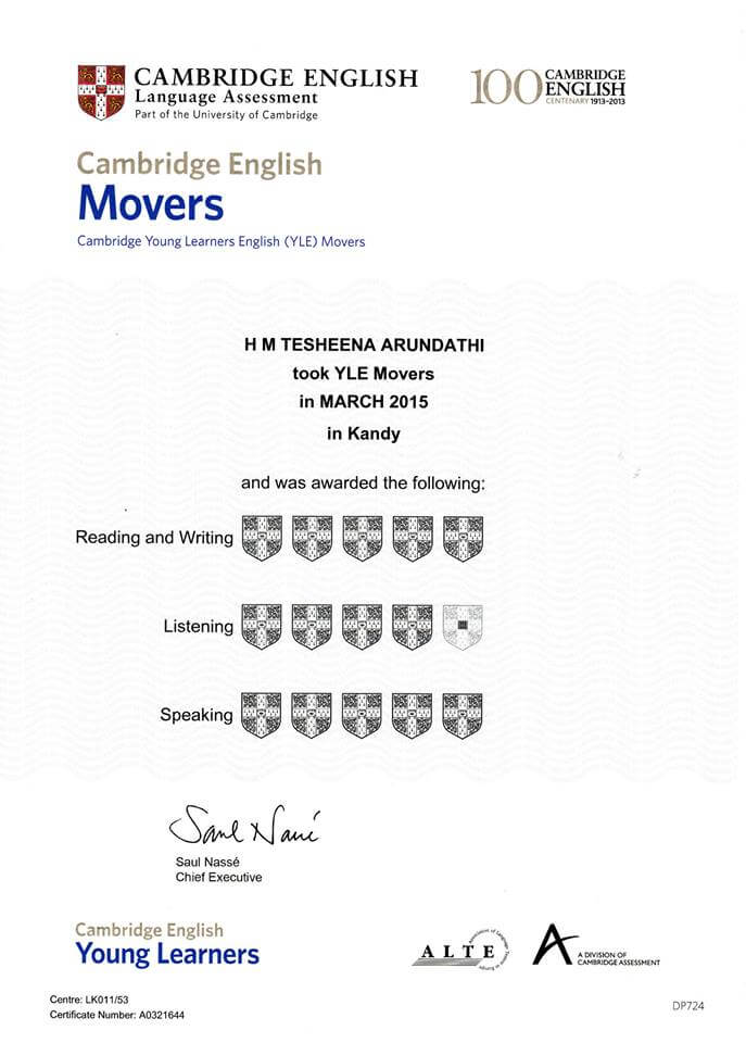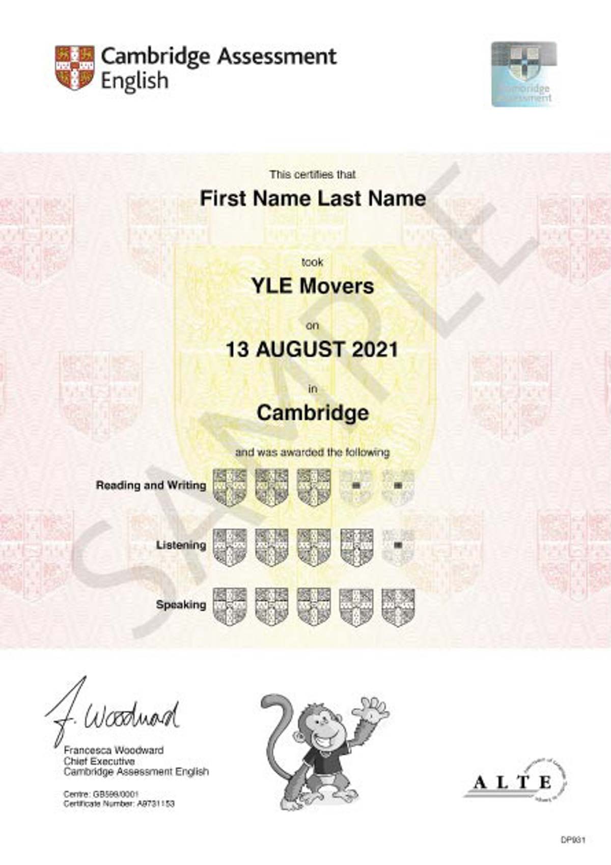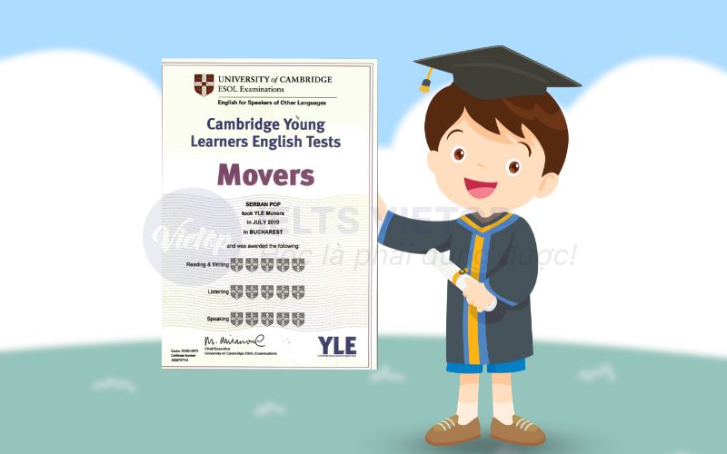 Chứng chỉ Movers của Cambridge là một trong những chứng chỉ tiếng Anh phổ biến dành cho trẻ em trong độ tuổi từ 8 đến 10. Một điểm đặc biệt và thuận lợi của chứng chỉ này là nó không có thời hạn hết hạn; tức là, khi trẻ thi đỗ và nhận chứng chỉ, giá trị của nó sẽ vĩnh viễn theo thời gian.