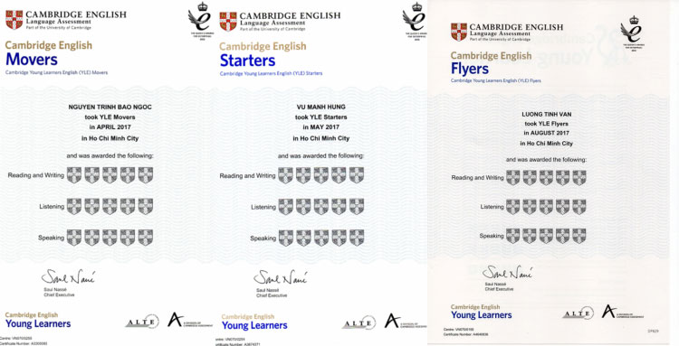 Khi tham gia kỳ thi Starters, các em không cần phải lo lắng về điểm thi vì bài kiểm tra không phân biệt giữa đậu và rớt. Thay vào đó, tất cả thí sinh đều nhận chứng nhận, giúp các bé cảm thấy tự tin và có động lực hơn trong việc học tập. Hơn nữa, mức lệ phí thi cũng rất hợp lý, chỉ từ 700.000 VNĐ đến 1.280.000 VNĐ, tùy vào từng trung tâm.