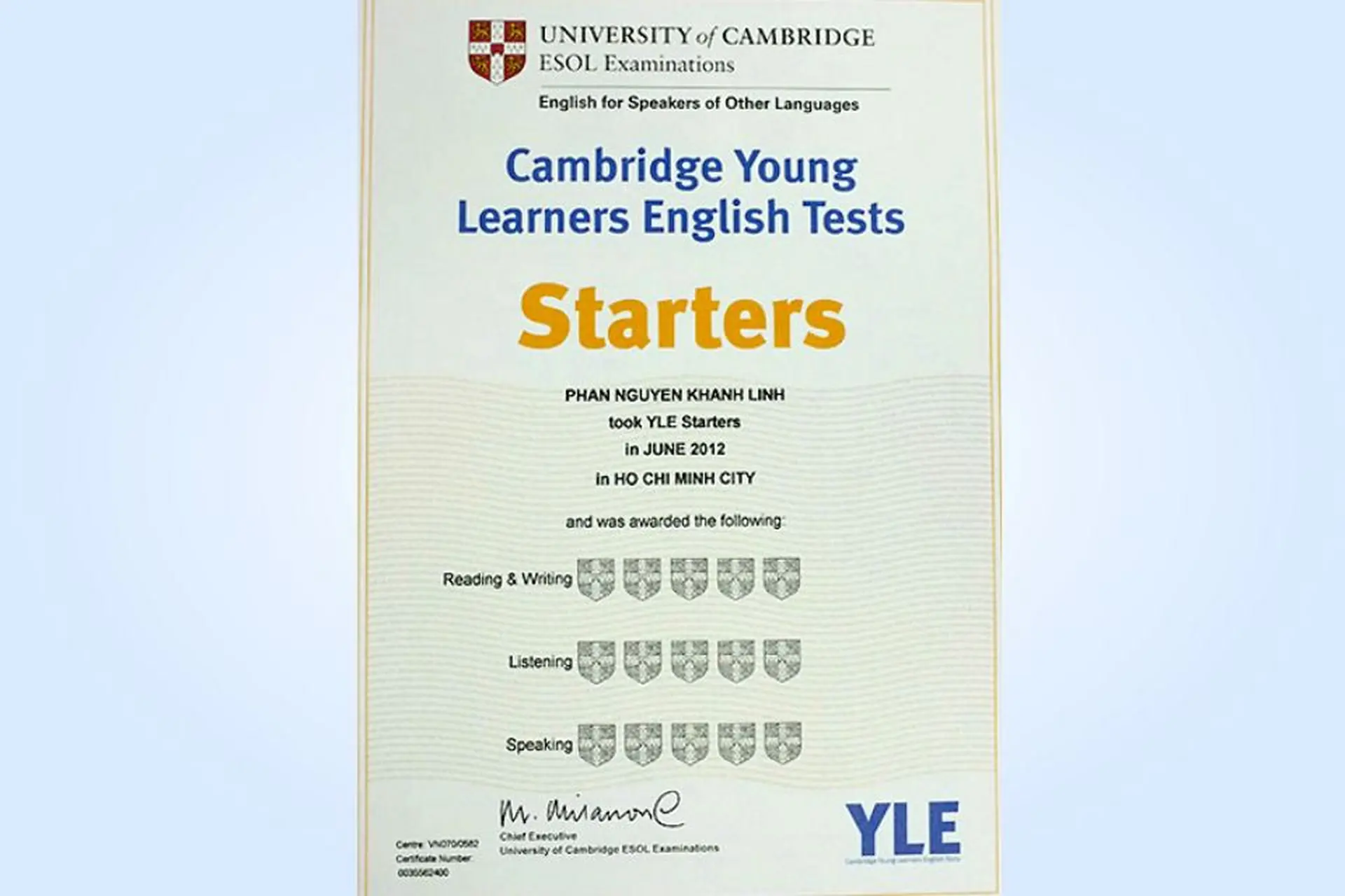 Khi trẻ có chứng chỉ Starters, điều này chứng minh rằng các con đã đạt được một mức độ tiếng Anh căn bản. Điều này cực kỳ hữu ích trong việc chuẩn bị cho các kỳ thi tuyển vào trường THCS. Hơn nữa, các bé sẽ cảm thấy tự hào về thành tích của mình, điều này thúc đẩy việc yêu thích học tiếng Anh.