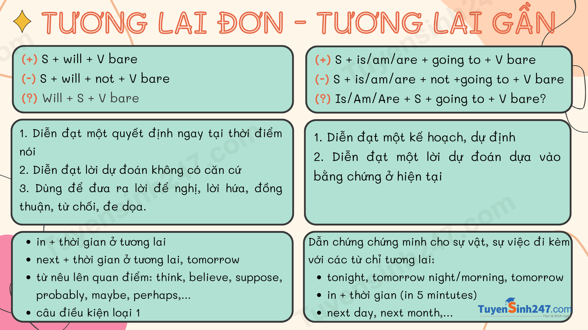 Sự khác biệt với thì tương lai đơn cũng rất quan trọng. Ví dụ, trong khi thì tương lai đơn sử dụng cấu trúc “will,” thì tương lai gần lại dùng “going to.” Việc nắm rõ cách sử dụng và dấu hiệu nhận biết sẽ giúp bạn giao tiếp hiệu quả hơn trong cuộc sống hàng ngày!