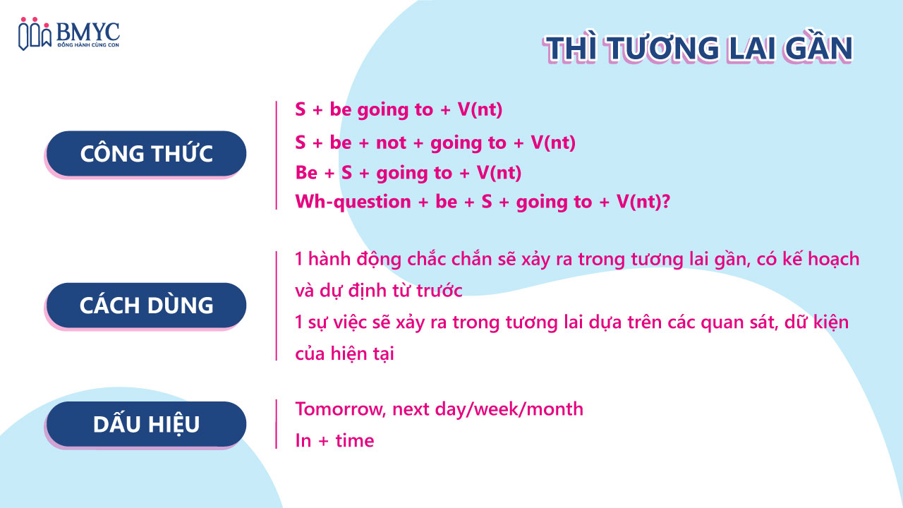 Trong tiếng Anh, Thì Tương Lai Gần (Near Future Tense) là một điểm ngữ pháp vô cùng quan trọng giúp chúng ta diễn đạt những dự định hoặc hành động sắp xảy ra trong tương lai gần. Việc nắm vững dấu hiệu nhận biết, công thức, cách sử dụng cũng như phân biệt các dạng câu trong thì này sẽ giúp bạn tự tin hơn khi giao tiếp và làm bài thi tiếng Anh. Bài viết dưới đây sẽ tổng hợp đầy đủ về Thì Tương Lai Gần, từ dấu hiệu nhận biết, cách dùng, công thức cho đến các từ mang tính dự báo thời gian, kèm ví dụ minh họa dễ hiểu.