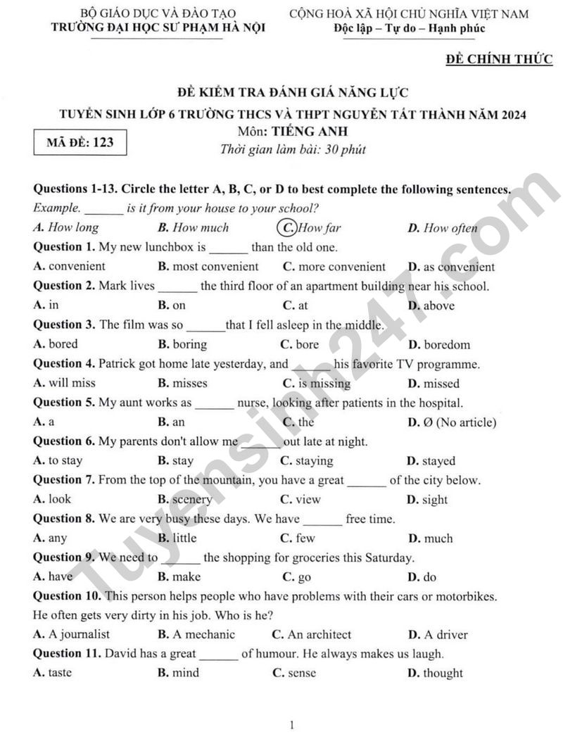 Bộ đề thi thử tiếng Anh lớp 6 mới nhất là một tài nguyên giá trị để các em học sinh có thể ôn tập và nâng cao kỹ năng ngôn ngữ. Những đề thi này không chỉ giúp học sinh làm quen với cấu trúc đề mà còn tạo cơ hội để các em rèn luyện từ vựng, ngữ pháp và kỹ năng đọc hiểu.