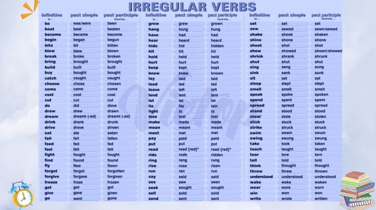 Trong tiếng Anh, có rất nhiều động từ bất quy tắc mà bạn thường xuyên gặp. Những từ như “be”, “have”, hay “do” không theo bất kỳ quy tắc cụ thể nào, vì vậy việc ghi nhớ chúng là vô cùng cần thiết. Thực tế, có đến 360 động từ bất quy tắc được liệt kê, và việc học thuộc lòng danh sách này sẽ giúp bạn cải thiện khả năng viết và nói.