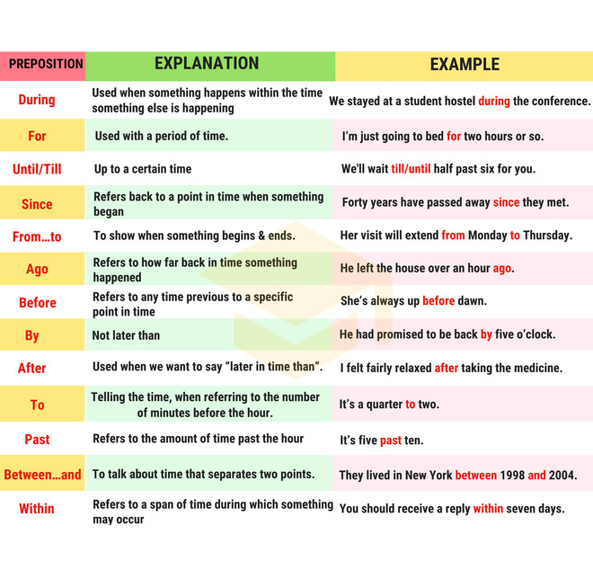 Giới từ chỉ thời gian trong tiếng Anh rất đa dạng và phong phú, giúp chúng ta xác định cụ thể thời điểm hoặc khoảng thời gian nhất định. Chẳng hạn, “at” được dùng để chỉ những thời điểm cụ thể: “I will meet you at 3 PM” có nghĩa là “Tôi sẽ gặp bạn vào lúc 3 giờ chiều.” Các cụm từ như “at noon” hay “at midnight” cũng là ví dụ điển hình cho cách sử dụng này.