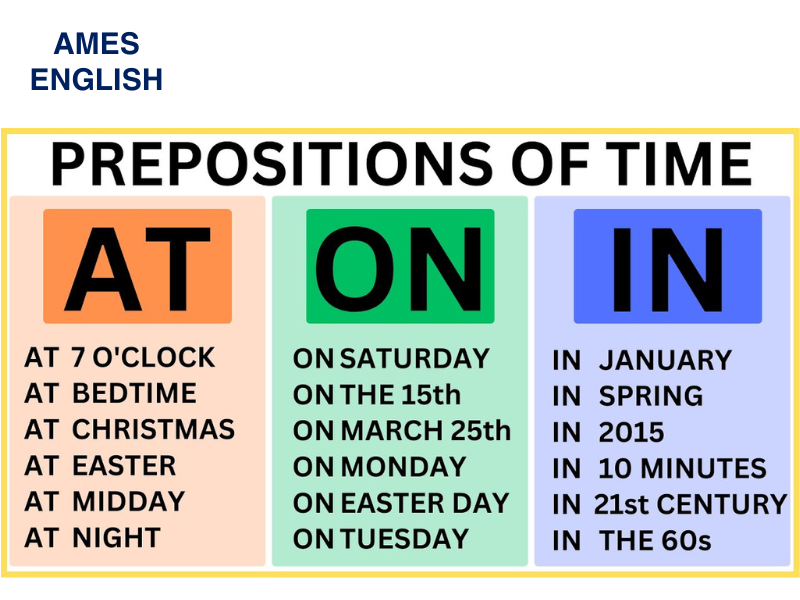 Giới từ chỉ thời gian trong tiếng Anh rất quan trọng để xác định thời điểm và khoảng thời gian diễn ra các sự việc. Chẳng hạn, “at” thường được sử dụng để chỉ thời điểm cụ thể trong ngày, như “at 8 PM”. Còn “on” được dùng cho các ngày trong tuần hoặc ngày tháng, ví dụ như “on Monday” hay “on July 4th”.
