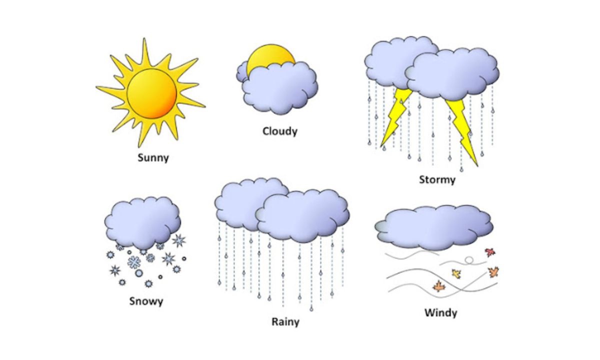 Thời tiết là một phần không thể thiếu trong cuộc sống hàng ngày của chúng ta. Khi ra ngoài, bạn có thể gặp nhiều tình trạng thời tiết khác nhau như sunny (nắng), cloudy (nhiều mây) hay rainy (mưa). Những từ như dry (khô) và wet (ướt) cũng rất thường gặp, giúp bạn mô tả thời tiết một cách chính xác hơn.