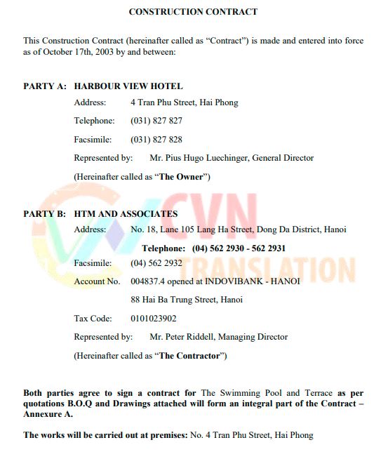 Dịch vụ dịch thuật hợp đồng tiếng Anh là một lĩnh vực quan trọng, giúp chuyển đổi các văn bản pháp lý từ tiếng Việt sang tiếng Anh một cách chính xác và chuyên nghiệp. Tại Dịch Thuật Số 1, chúng tôi cung cấp các bản dịch hợp đồng thương mại và hợp đồng kinh tế với chất lượng hàng đầu. Chúng tôi cam kết mang đến sự hài lòng cho Quý khách hàng thông qua dịch vụ uy tín và giá cả hợp lý.
