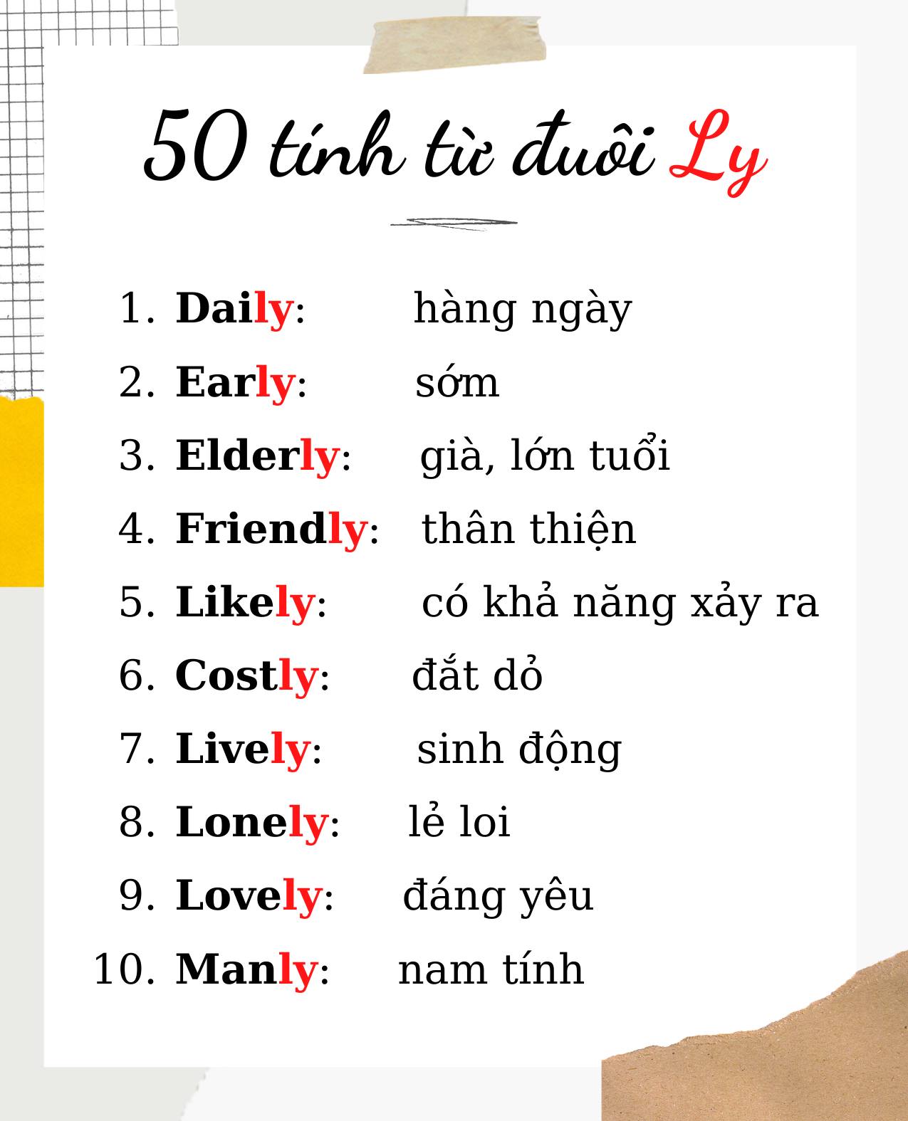 Trong tiếng Anh, đuôi “-ly” thường được dùng để hình thành các tính từ, giúp mô tả đặc điểm, tính chất của sự vật, hiện tượng. Ví dụ, chúng ta có “friendly” cho những chú chó dễ thương, hay “lovely” để nói về những điều đẹp đẽ. Việc sử dụng đuôi “-ly” là một trong những cách đơn giản nhất để chuyển từ tính từ sang trạng từ chỉ bằng cách thêm “-ly” vào sau.