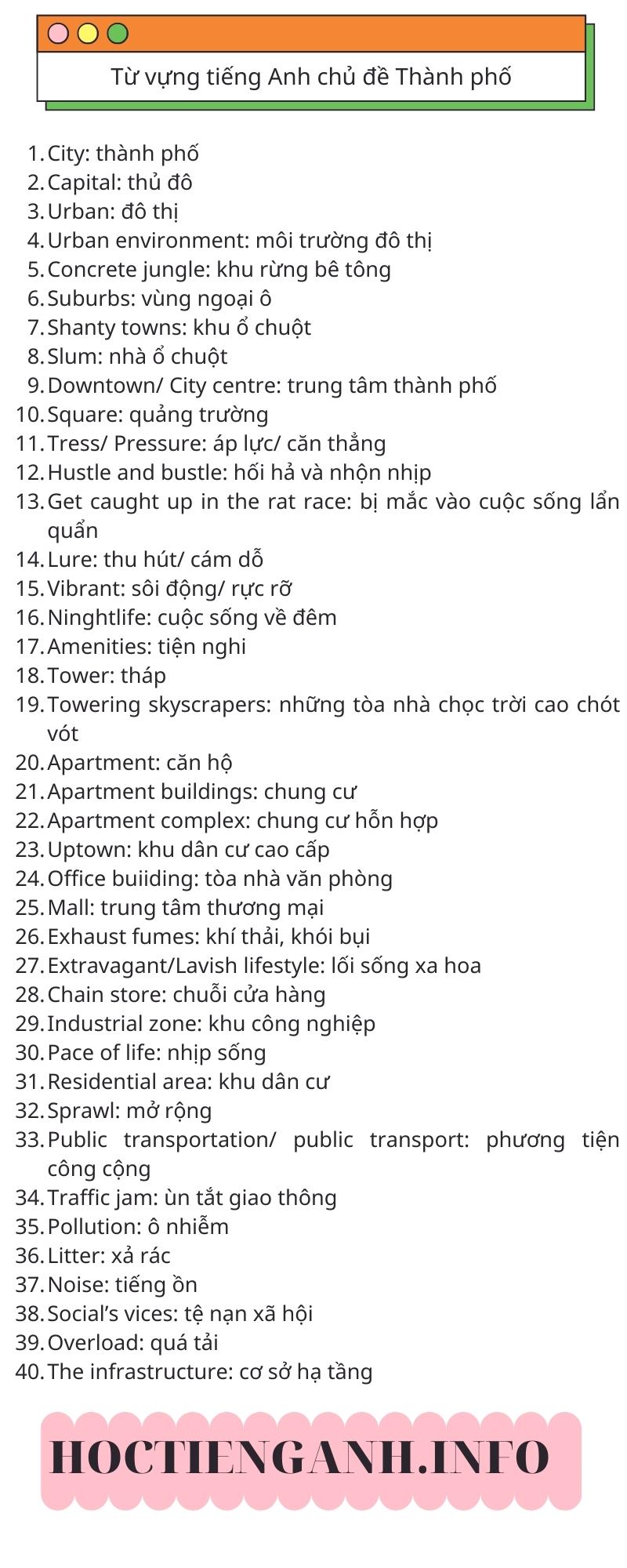 Từ vựng khu dân cư tiếng Anh hữu ích cho bạn học tập