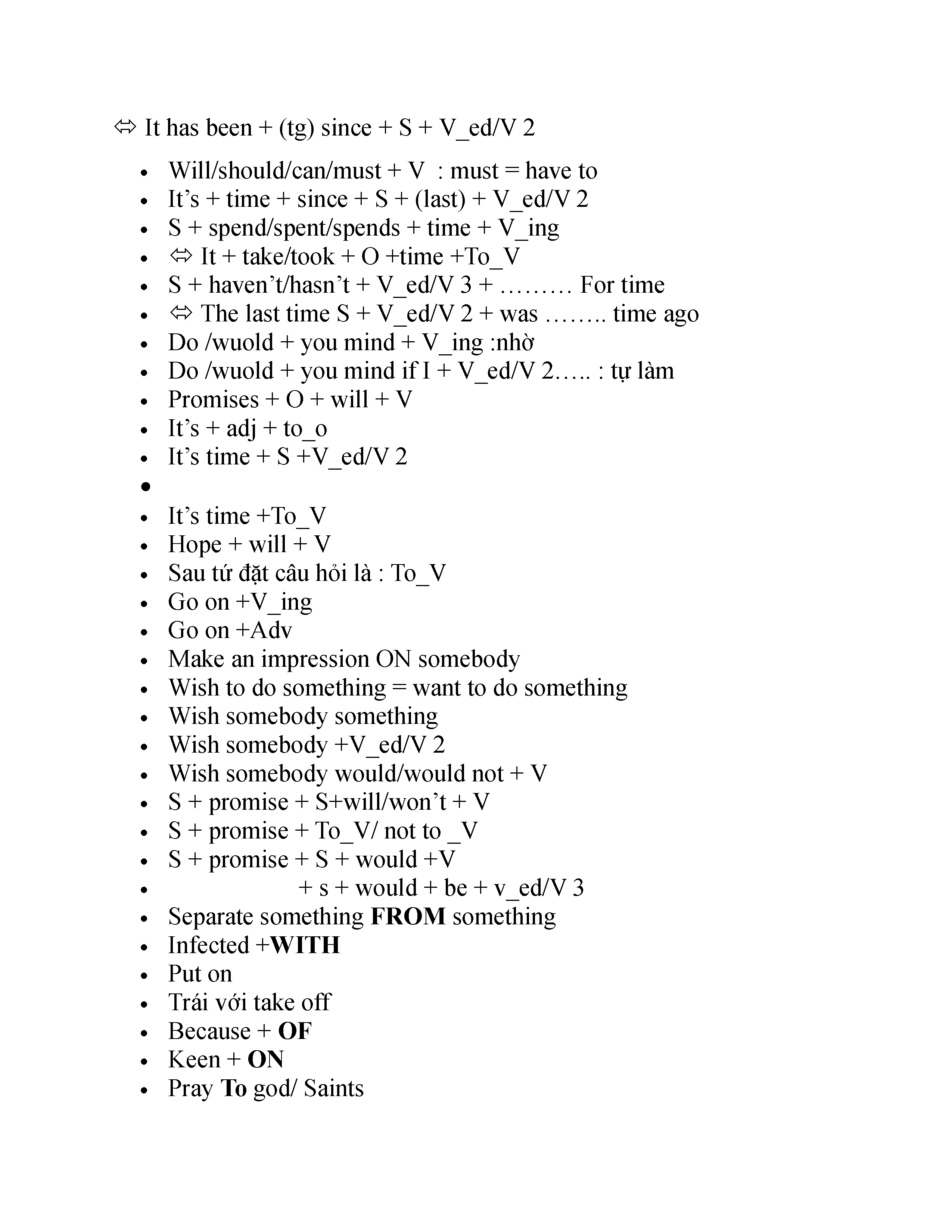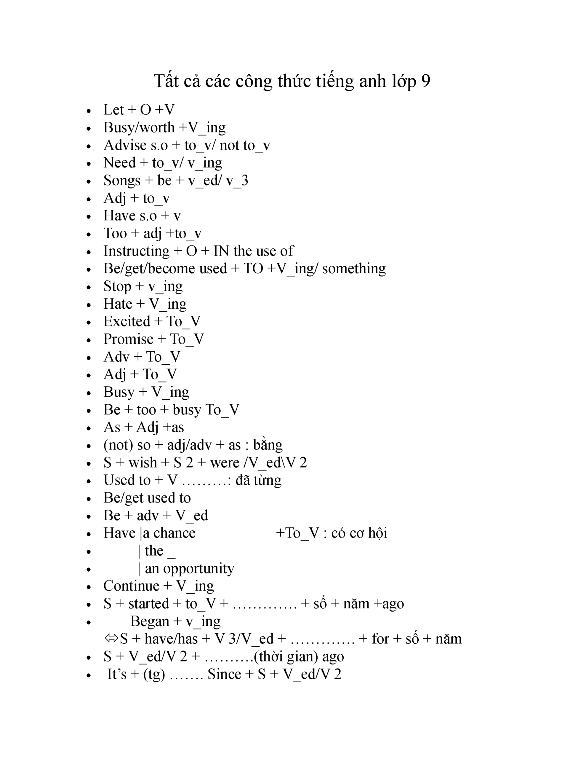 Bên cạnh đó, tài liệu tổng hợp còn bao gồm nhiều bài tập thực hành giúp củng cố kiến thức, từ việc viết câu cho đến việc áp dụng kiến thức vào tình huống thực tế. Điều này sẽ giúp học sinh tự tin hơn trong việc giao tiếp và hiểu sâu hơn về ngữ pháp trong tiếng Anh.