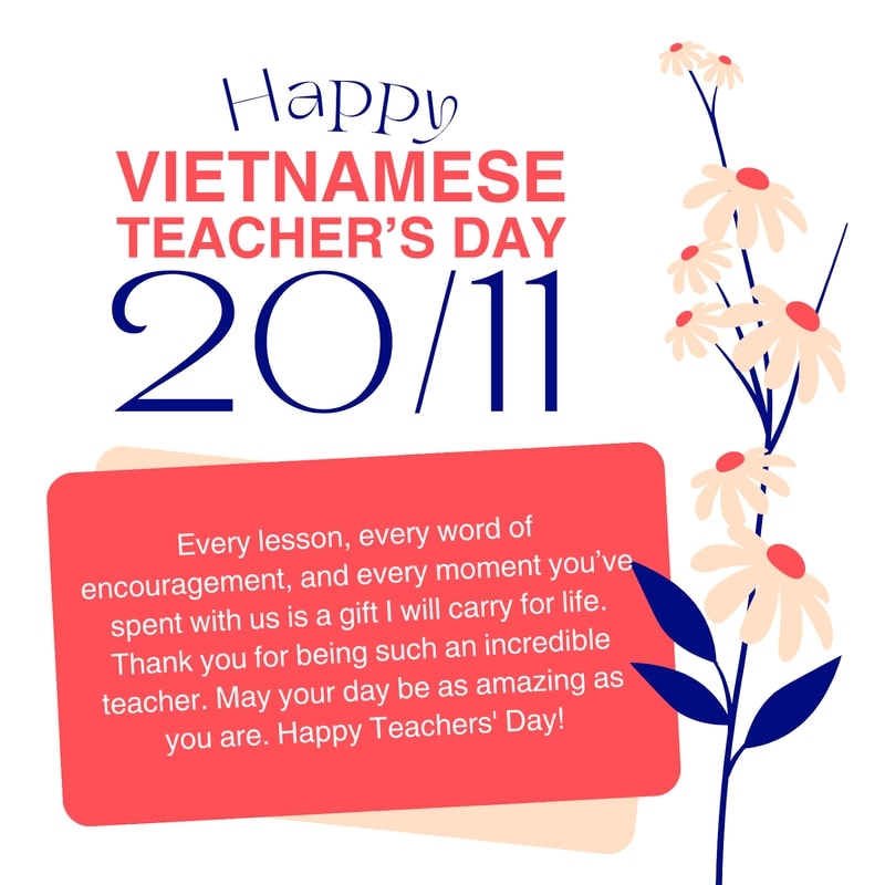 Vietnamese Teachers’ Day, celebrated on November 20th, is a special occasion to honor and appreciate the dedication of teachers. On this wonderful day, I want to extend my warmest wishes to all teachers. May you experience endless happiness and good health, as well as the joy of knowing how much you influence our lives.