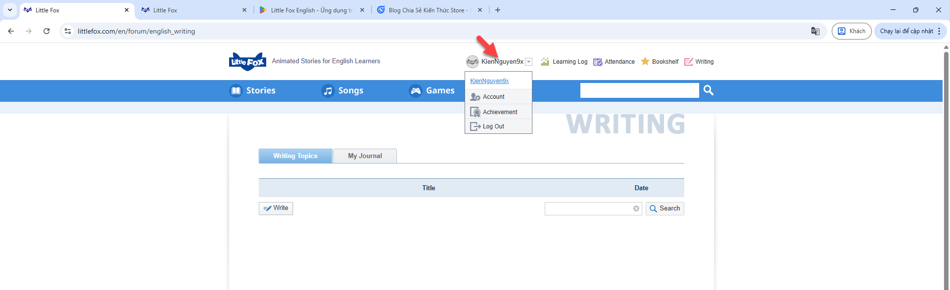 Little Fox không chỉ hỗ trợ học tiếng Anh mà còn đa dạng các ngôn ngữ khác như tiếng Trung. Mọi tài khoản đều ghi lại nhật ký sử dụng và tiến trình học, giúp bạn dễ dàng theo dõi sự phát triển của trẻ. Nếu bạn đang có ai đó muốn chia sẻ tài khoản hoặc tìm bạn học chung, hãy kết nối cùng nhau để tiết kiệm chi phí nhé!
