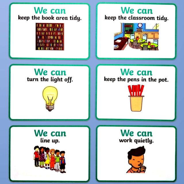 Another important guideline is “Sit nicely,” which promotes a respectful atmosphere. Students are expected to show respect towards teachers and classmates by being polite and friendly. This includes following the dress code or “Uniform” rule, which fosters a sense of unity and pride in the classroom.