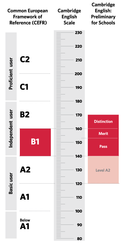 PET tương đương với trình độ B1 trong Khung tham chiếu Châu Âu về Ngôn ngữ (CEFR). Kỳ thi này không chỉ nhằm đánh giá kiến thức ngôn ngữ mà còn chứng minh khả năng sử dụng tiếng Anh trong thực tế.