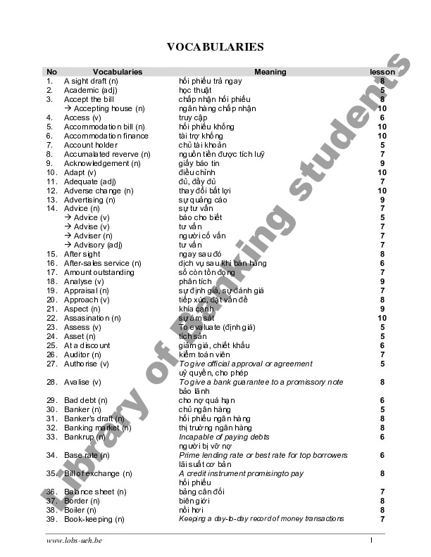 Tiếng Anh Chuyên Ngành Tài Chính Ngân Hàng