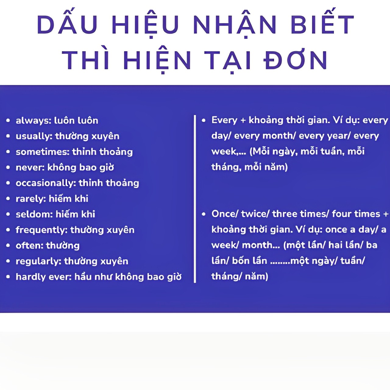 Dấu Hiệu Nhận Biết Thì Hiện Tại Đơn