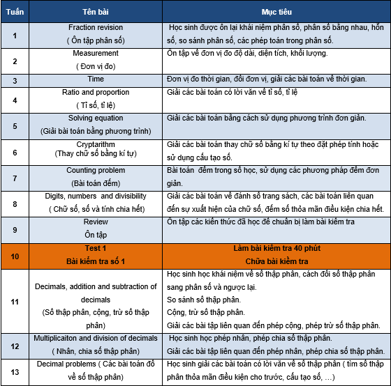 Chương trình Toán Tiếng Anh lớp 5 được thiết kế đặc biệt nhằm giúp học sinh nắm vững kiến thức cơ bản và chinh phục mọi bài tập. Trong chương trình, học sinh sẽ được học từ vựng chuyên ngành như đại số, hình học và phân số. Việc hiểu rõ các từ như “fraction,” “algebra,” và “geometry” sẽ giúp các em dễ dàng áp dụng kiến thức vào thực tế.