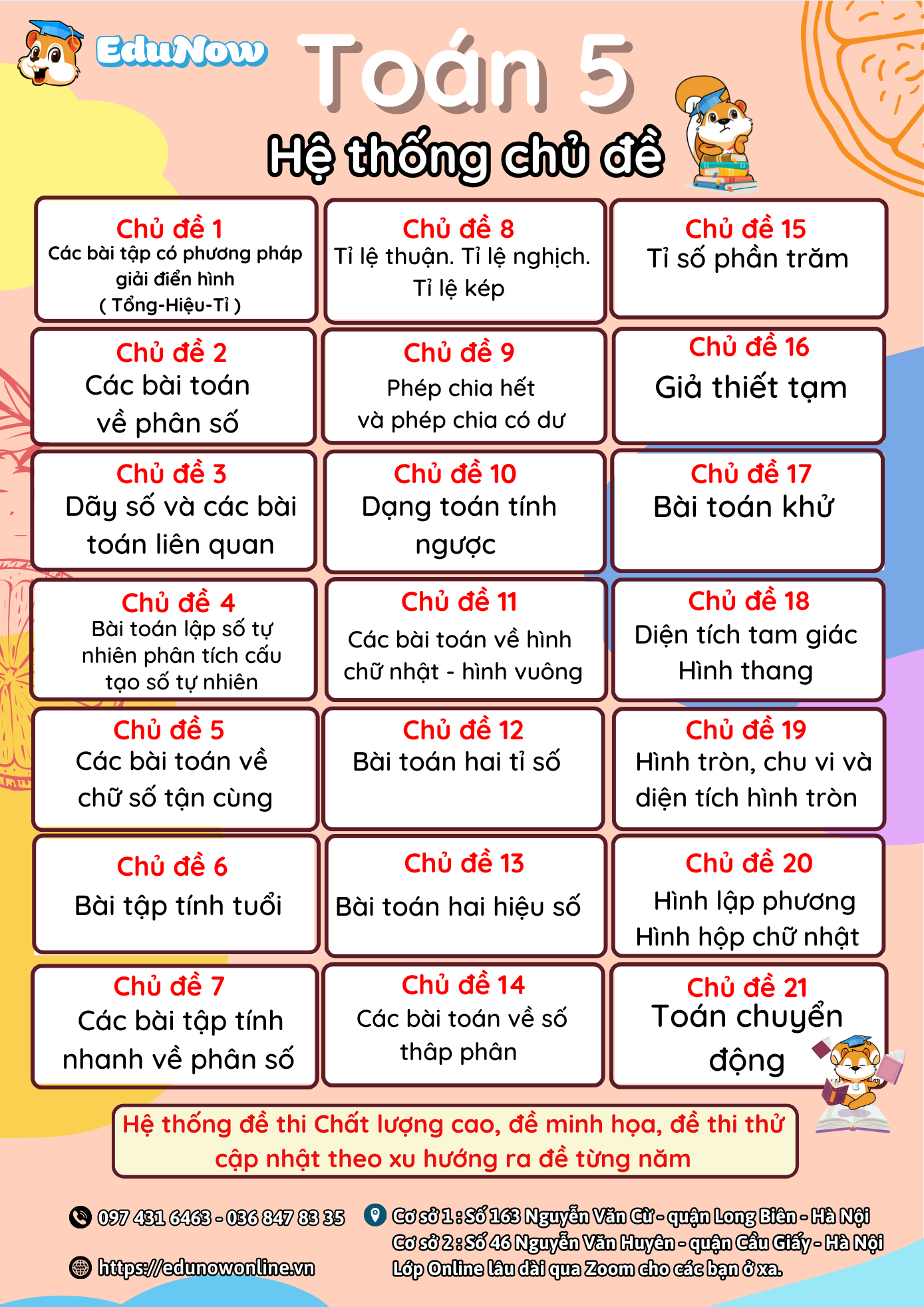 Toán Tiếng Anh Lớp 5 là một trong những chương trình học quan trọng giúp học sinh phát triển tư duy logic và kỹ năng sử dụng tiếng Anh trong môn Toán. Việc học tốt môn Toán Tiếng Anh sẽ tạo nền tảng vững chắc để các em tự tin bước vào các bậc học cao hơn cũng như đáp ứng nhu cầu hội nhập quốc tế. Bài viết dưới đây sẽ tổng hợp đầy đủ kiến thức, bài tập, đề thi và các tài liệu hữu ích cho Toán Tiếng Anh Lớp 5, giúp học sinh dễ dàng ôn tập, học tập và đạt kết quả cao trong môn học này.