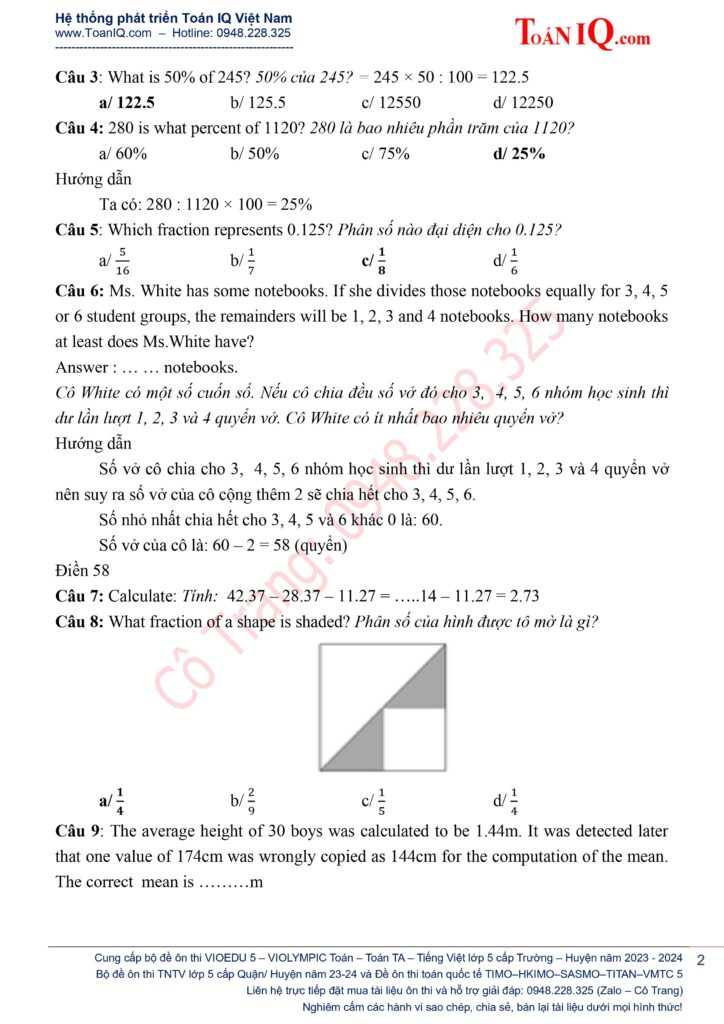 Ngoài ra, việc giải toán tiếng Anh cũng mang lại nhiều lợi ích. Khi các bài giải được trình bày bằng cả tiếng Việt và tiếng Anh, các em có thể dễ dàng so sánh và hiểu sâu hơn về cách làm. Đặc biệt, tài liệu ôn tập như tập hợp 180 câu Violympic Toán Tiếng Anh sẽ là nguồn tư liệu quý giá cho học sinh.