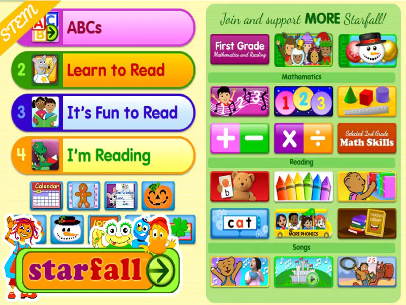 Bên cạnh đó, Starfall.com cũng là một lựa chọn tuyệt vời. Trang này sử dụng các câu chuyện hoạt hình sinh động để bộ cụ thể hơn, giúp trẻ học từ vựng và ngữ pháp thông qua việc kể chuyện lôi cuốn.
