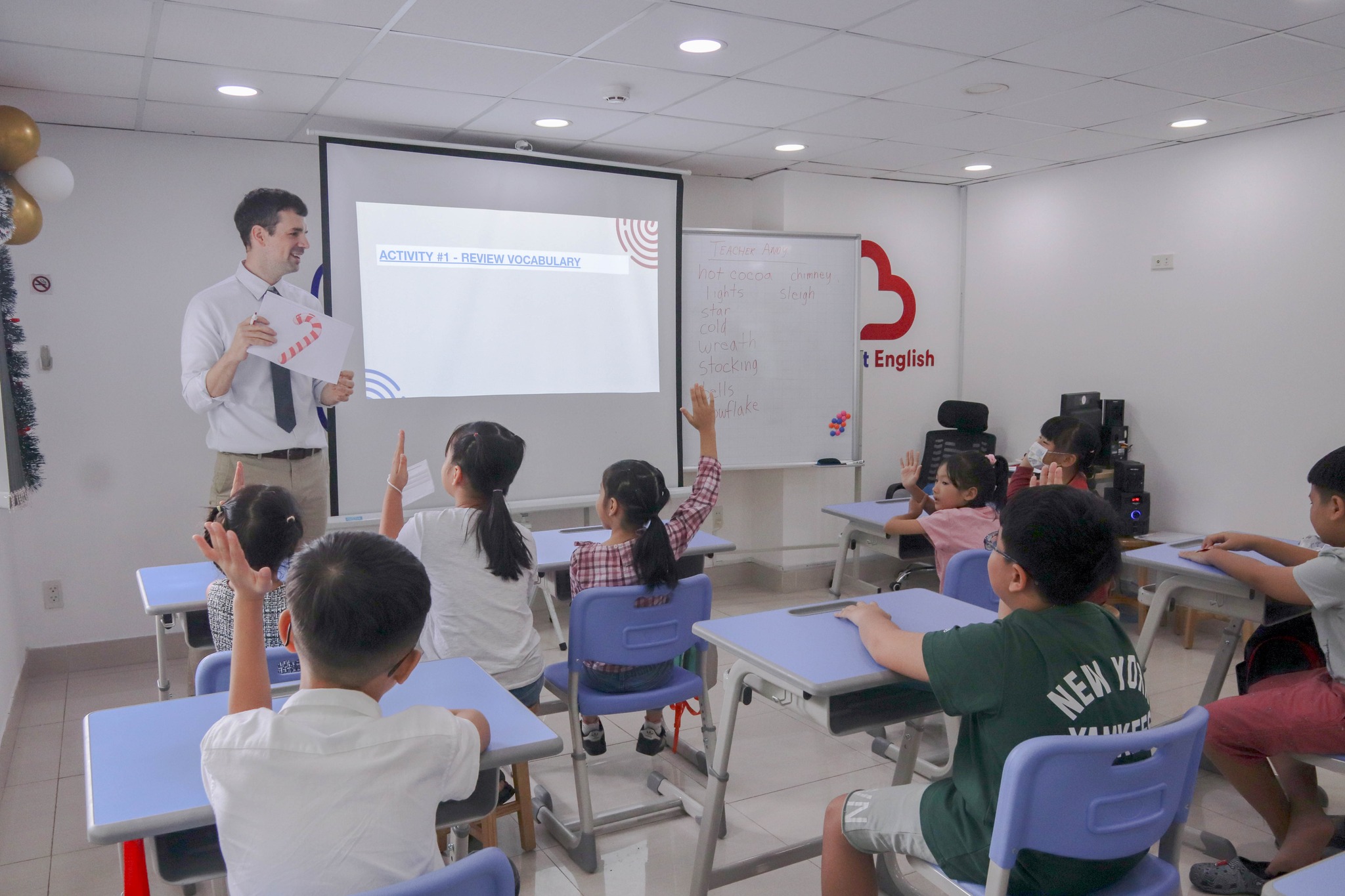 Bên cạnh đó, các hoạt động ngoại khóa như câu lạc bộ tiếng Anh, workshop kỹ năng hội thoại hay ngày hội “English Day” đều rất hấp dẫn và bổ ích. Đội ngũ giáo viên có kinh nghiệm không chỉ dạy kiến thức mà còn khơi dậy niềm đam mê học tiếng Anh cho học viên. Đây chắc chắn là một lựa chọn tuyệt vời cho các bậc phụ huynh đang tìm kiếm môi trường học tiếng Anh chất lượng cho con em.