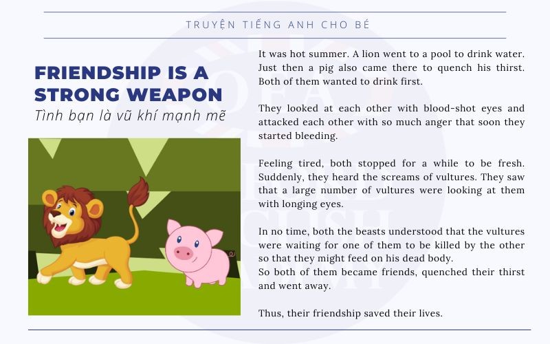 Truyện Đọc Tiếng Anh Cho Bé là một nguồn tài liệu quý giá giúp các em nhỏ tiếp cận với tiếng Anh một cách tự nhiên và thú vị. Những câu chuyện ngắn như “The Fox and the Grapes” hay “The Wolf and the Lamb” không chỉ giải trí mà còn mang lại những bài học quý giá về nhân cách và đạo đức. Qua những tình tiết đơn giản nhưng sâu sắc, bé sẽ học được cách ứng xử như trung thực, kiên nhẫn và tôn trọng người khác.