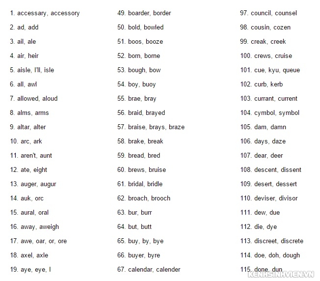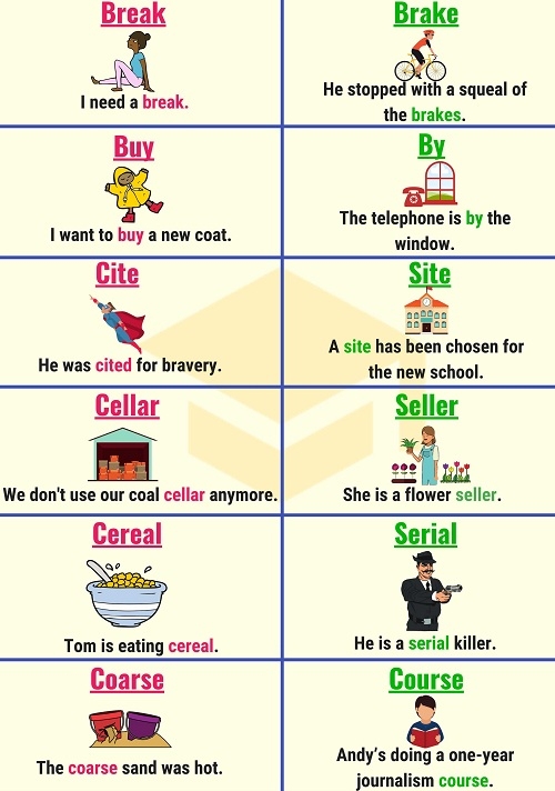 Để cải thiện khả năng sử dụng từ đồng âm, người học tiếng Anh có thể tham khảo danh sách những cặp từ phổ biến như “hear” và “here”, hay “sell” và “cell”. Những gì bạn cần là chú ý ngữ cảnh để hiểu rõ nghĩa của chúng, từ đó nâng cao kỹ năng giao tiếp của bản thân.