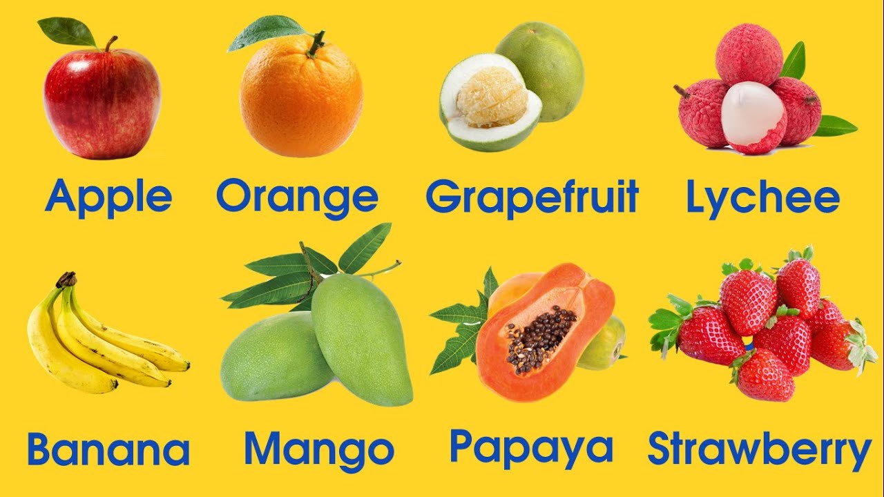 Học tiếng Anh qua chủ đề hoa quả là một cách thú vị và hiệu quả để bé làm quen với ngôn ngữ. Những từ vựng cơ bản như apple (táo), banana (chuối), kiwi fruit (trái kiwi), và orange (cam) là những từ đầu tiên mà các bậc phụ huynh có thể dạy cho bé. Ngoài ra, các loại fruit khác như peach (đào), pineapple (thơm), rambutan (chôm chôm), coconut (dừa), cherry (anh đào), và avocado (bơ) cũng rất thú vị và dễ nhớ.