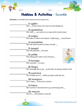 Bài học bao gồm nhiều hoạt động, từ xây dựng từ vựng đến các bài tập nghe. Học sinh sẽ lắng nghe một đoạn audio về các hoạt động mà một người yêu thích, từ ca hát, nhảy múa đến vẽ tranh. Qua đó, các em sẽ cải thiện cả kỹ năng nghe và nói.