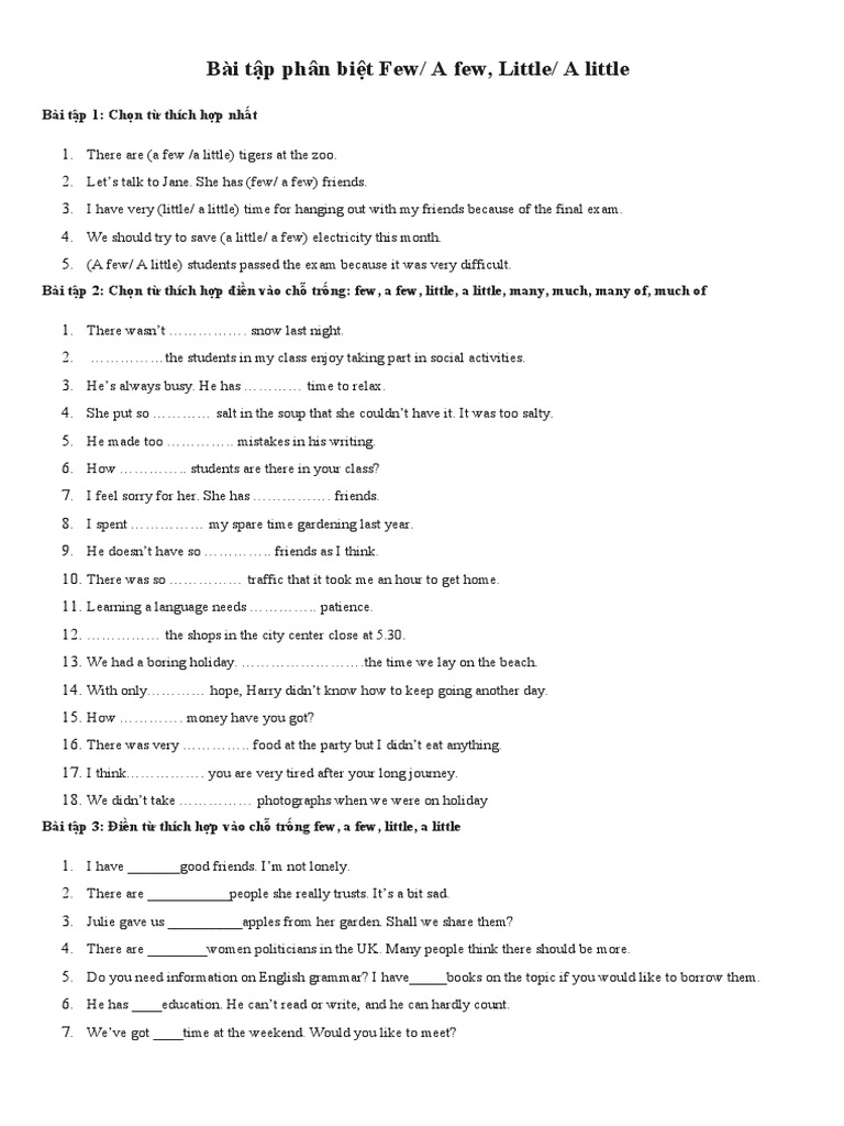 A Few và A Little là hai từ được sử dụng phổ biến trong tiếng Anh để chỉ số lượng nhỏ, tuy nhiên chúng có cách dùng khác nhau và dễ gây nhầm lẫn cho học sinh. Việc phân biệt…