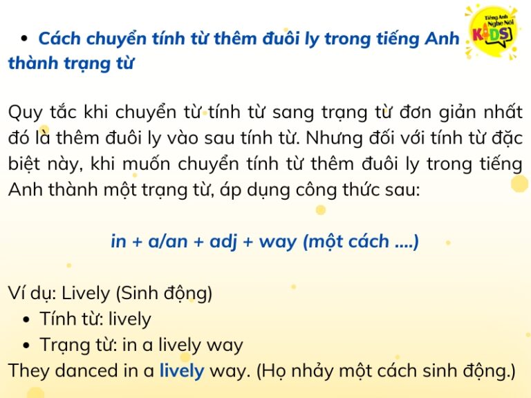 Trong tiếng Anh, việc thêm đuôi “-ly” vào các từ vựng là một chủ điểm ngữ pháp quan trọng giúp người học diễn đạt ý nghĩa một cách linh hoạt và chính xác hơn. Đuôi “-ly” thường xuất hiện ở…